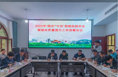县政府党组成员、长治市太行山大峡谷旅游开发管理中心主任秦志岩在会上强调了四个方面:一是认清特殊形势,以归零心态迎接双节大考:面临客流压力大、游客对体验服务与情感共鸣要求高、假期连续阴雨天气的特殊情况,全体人员要摒弃经验主义,以“从零开始”心态做扎实准备;二是聚焦关键环节,以精准举措筑牢安全防线:强化雨天滑坡落石防范与游览安全、做好索道游船等特种设备排查维护、科学疏导交通确保车辆顺畅;三是突出双节特色,以“暖心”服务提升游客体验:优化售票检票候车流程、关注老幼特殊人群、落实投诉“首问负责制”、加强公共场所保洁;四是强化协同联动,以“闭环”管理确保万无一失:明确内部职责、深化与属地政府及公安交警联动,严格执行领导带班和24小时值班制度,完善应急预案与物资储备,通过媒体发布实时信息引导游客错峰出行。大家要以高度政治责任感、饱满热情和务实作风,打赢假日保障攻坚战,让游客在太行山大峡谷度过平安、欢乐、祥和的假期。